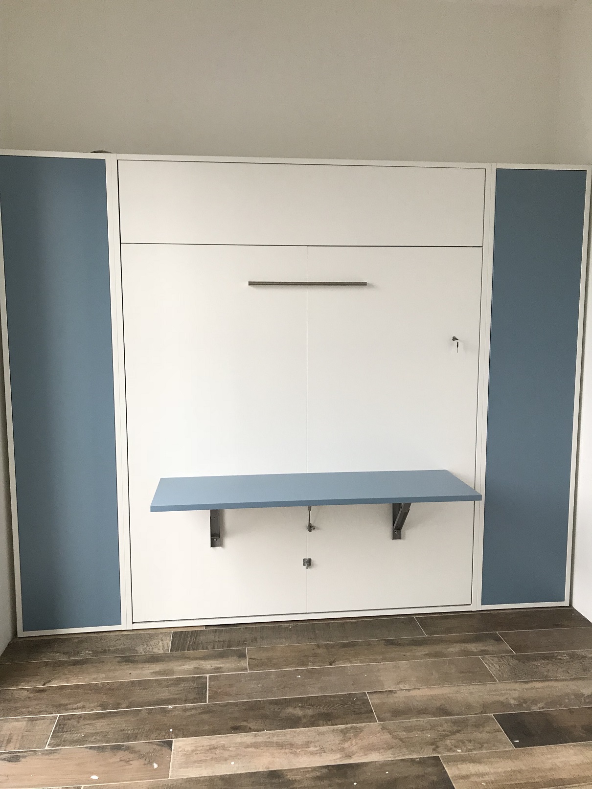 Bij deze klant hebben wij een bedkast Loft Deluxe met desk geplaatst in de logeerkamer.