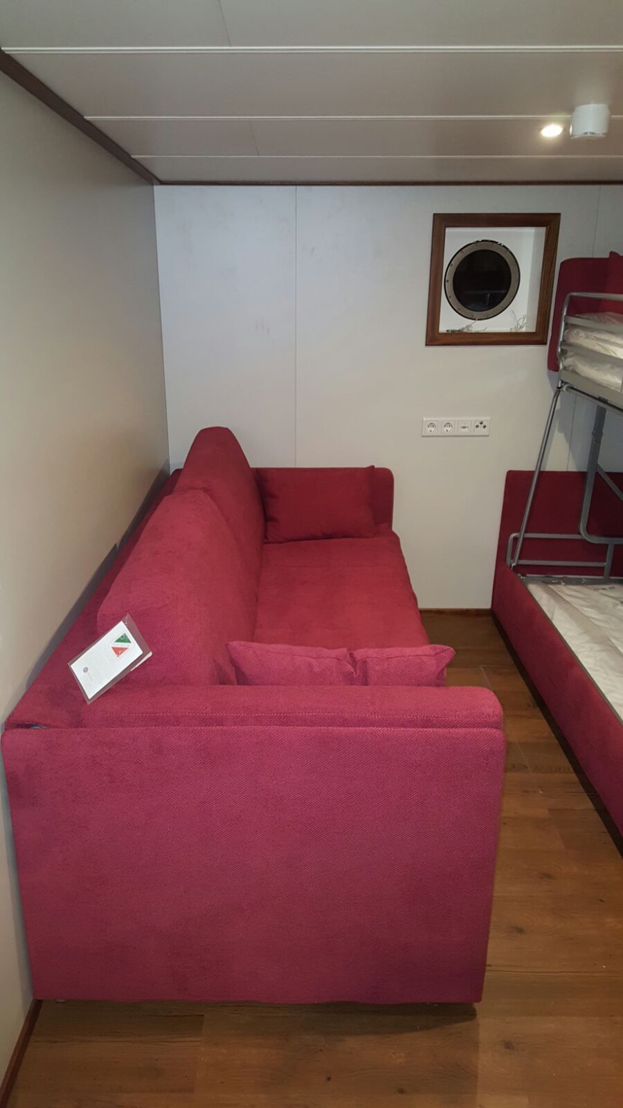 Uitgevoerd in een rode velours stof, inclusief koudschuimmatrassen geleverd