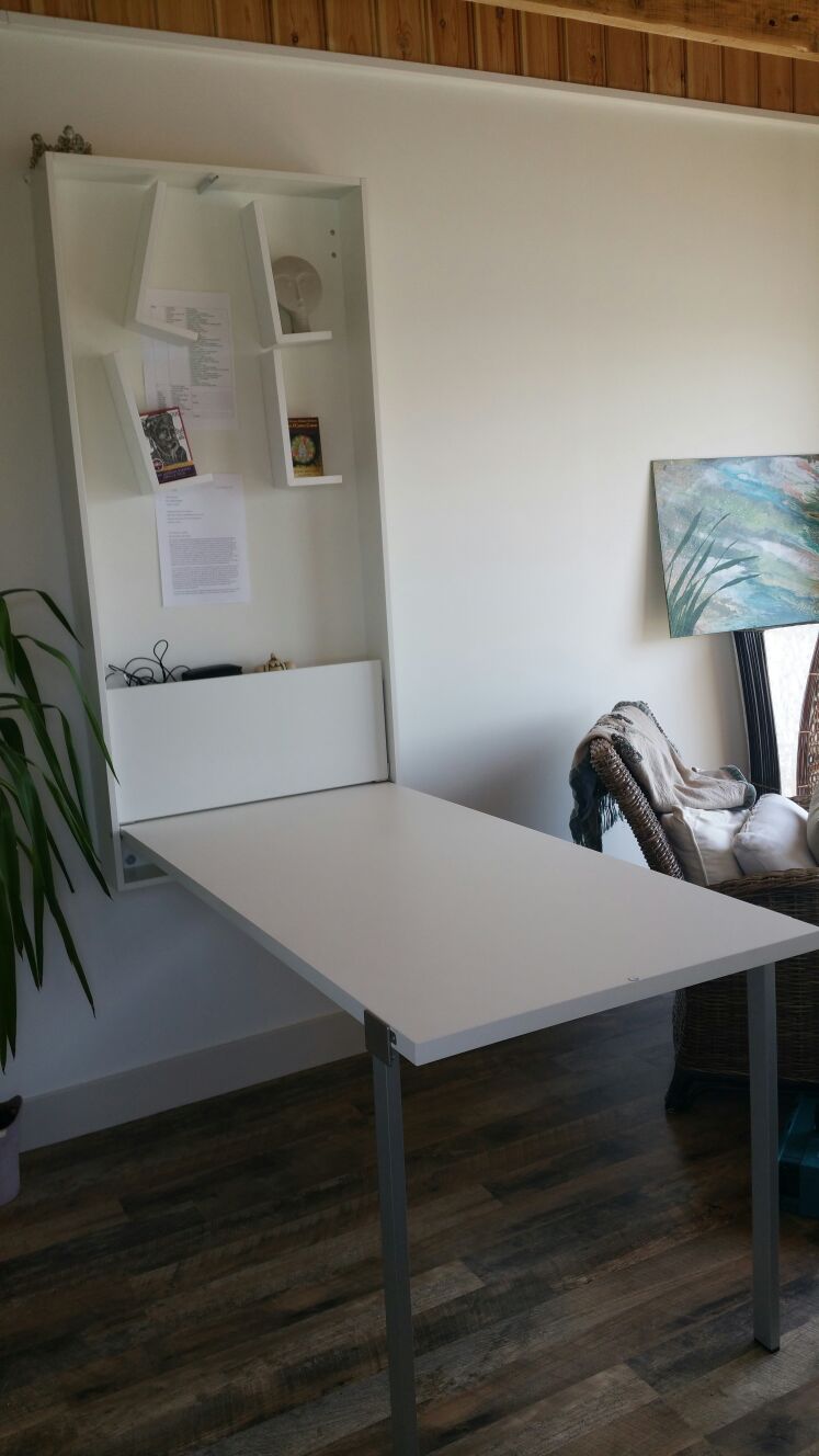 Zo is er op een woonark 1 kamer ingericht als complete werk-slaapkamer.